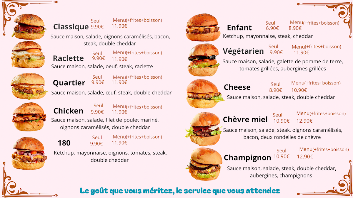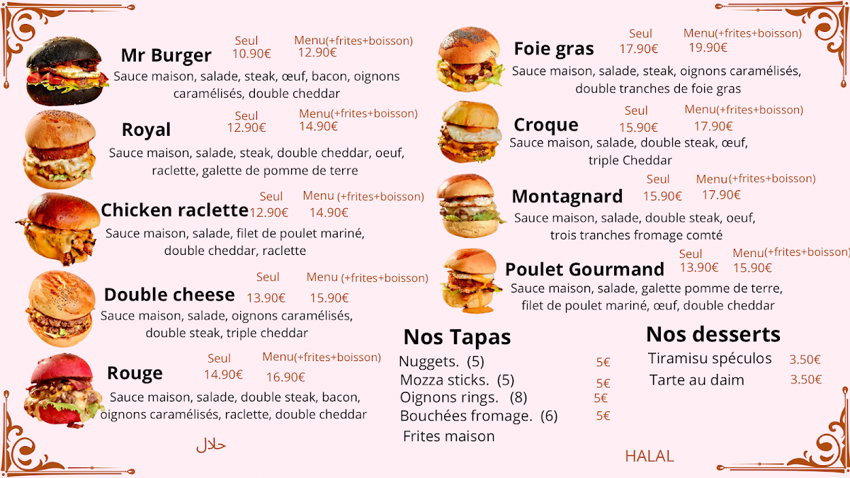 Mr BURGER in Tournefeuille is a haven for burger enthusiasts craving bold flavors and fresh ingredients. Their menu champions classic and creative burgers alike, each crafted with a house-made sauce that elevates every bite. The Classique boasts caramelized onions, bacon, and double cheddar, delivering a rich, savory experience, while the Raclette melds melted raclette cheese with a perfectly cooked egg for a comforting twist.